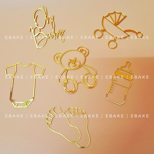 Baby Shower Acrylic Set / Acrylic Charms (6 Pieces) Cake Topper Set