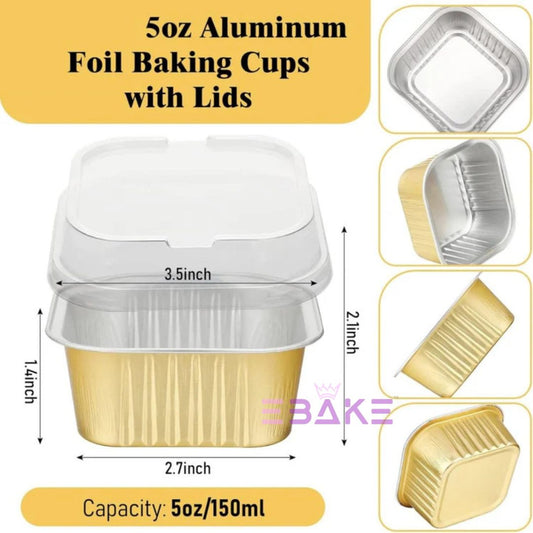 Aluminium Foil Square Baking Cup With Lid (Black)