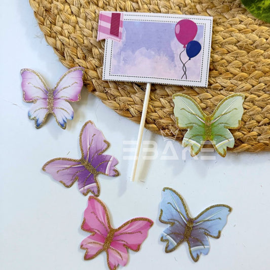 Black Paper Butterflies With Birthday Tag - (Set of 10 Pieces)