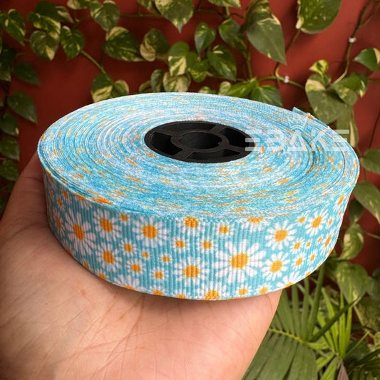 Daisy Flower Printed Grosgrain Ribbon Yellow & Blue