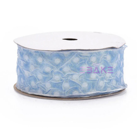 Dots Printed Sheer Chiffon Wrinkle Ribbon 2.5 CM - 10 Yards (BLUE)