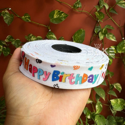 Happy Birthday Party Printed White Grosgrain Ribbon