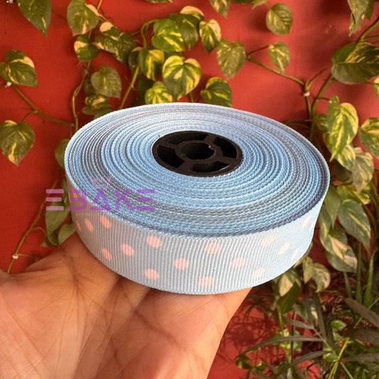 Light Blue Polka Dot Printed Grosgrain Ribbon