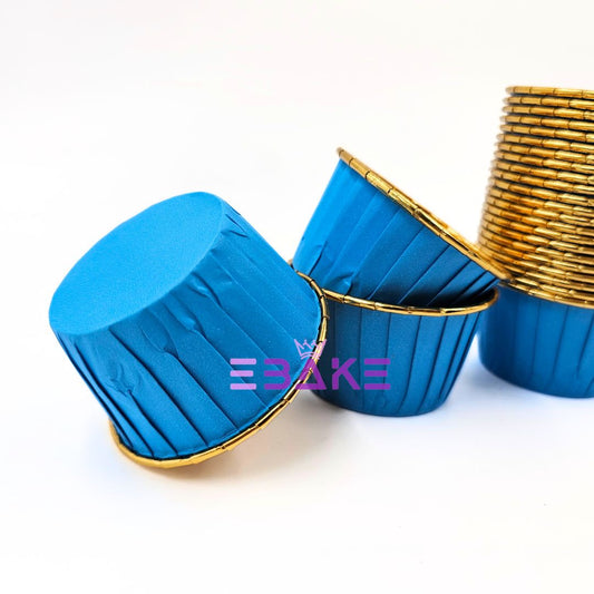 Small Imported Golden Lined Rolled Rim Muffin Cup / Cupcake Liners - Blue (Set of 50 pieces)
