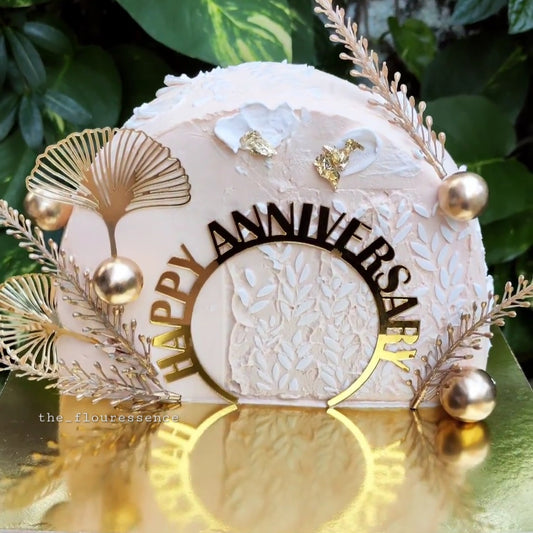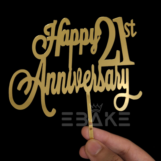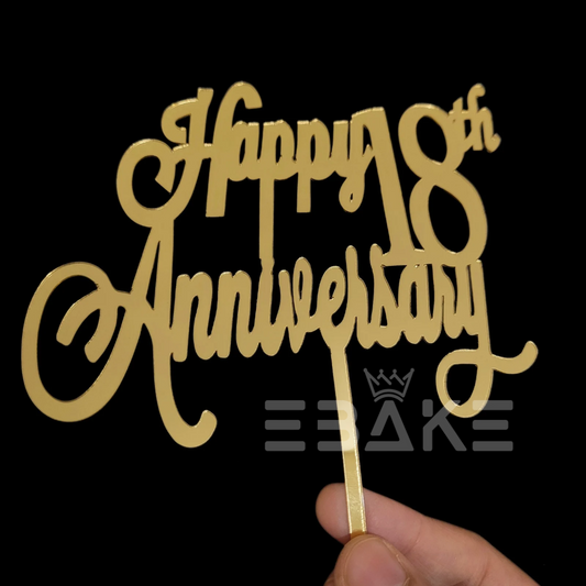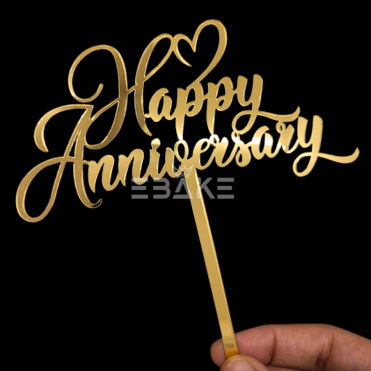 Happy Anniversary Cake Topper Shimmer Gold MDF