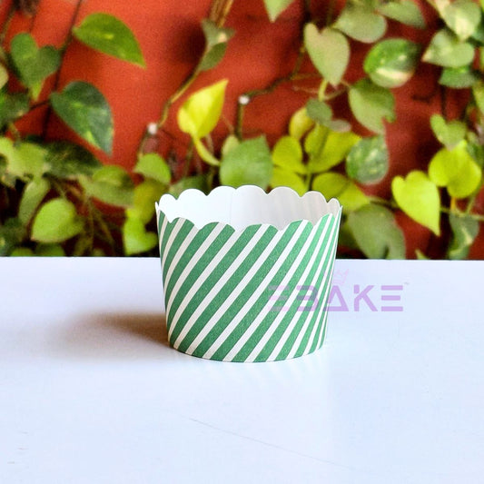 Printed Paper Muffin Cup - Set Of 50 Pieces (Green Stripes)