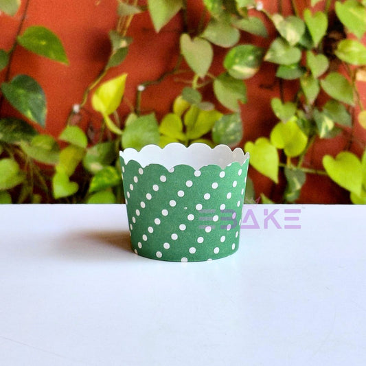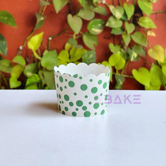 Polka Dot Printed Paper Muffin Cup - Set Of 50 Pieces (Green)