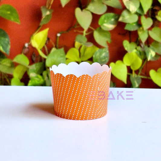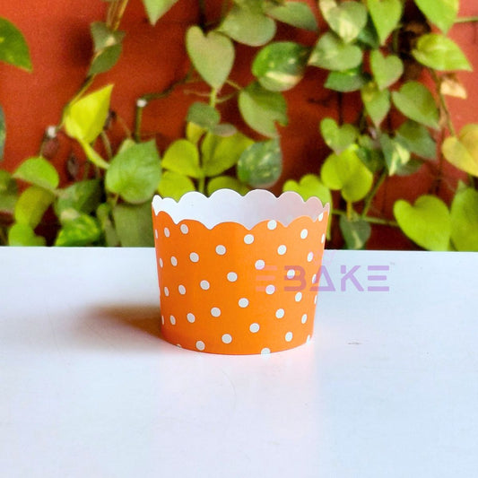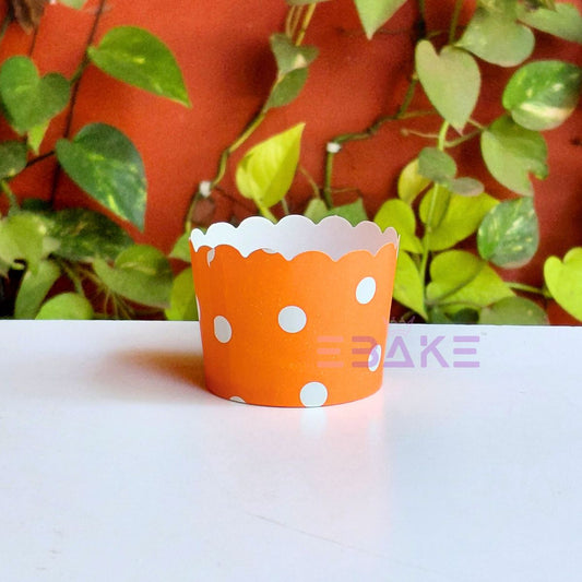 Polka Dot Printed Paper Muffin Cup - Set Of 50 Pieces (Orange)