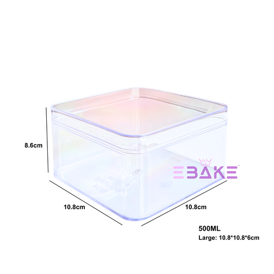 500ml Square Acrylic Dessert Box / Cake Tub (With Lid) Large 10.8x10.8x6cm