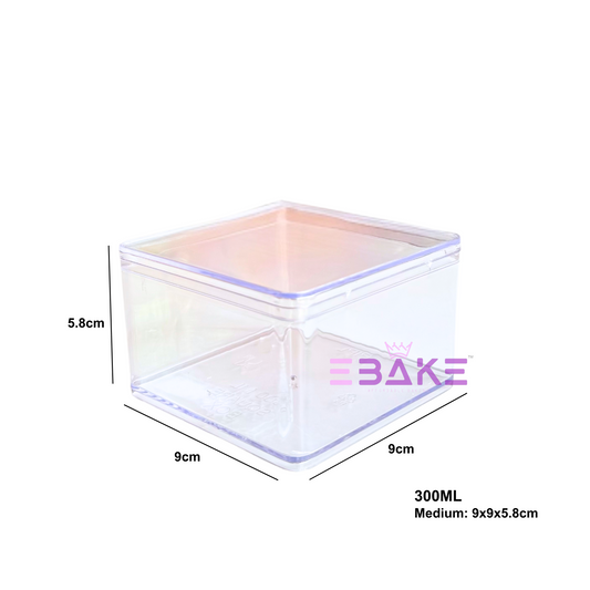 300ml Square Acrylic Dessert Box / Cake Tub (With Lid) Medium 9x9x5.8cm