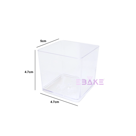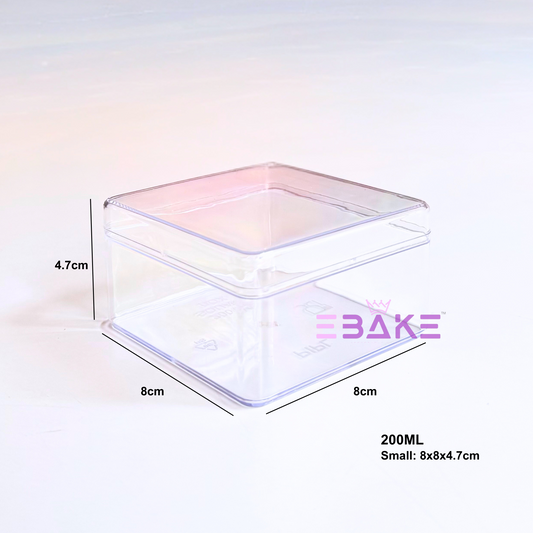 200ml Square Acrylic Dessert Box / Cake Tub (With Lid) Small 8x8x4.7cm