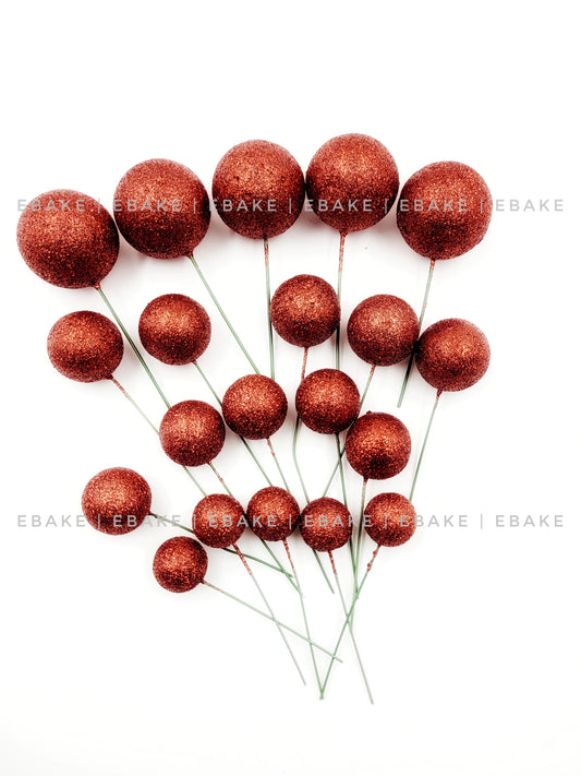 Red Glitter Faux Balls - Set Of 20 Pieces