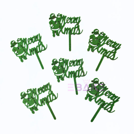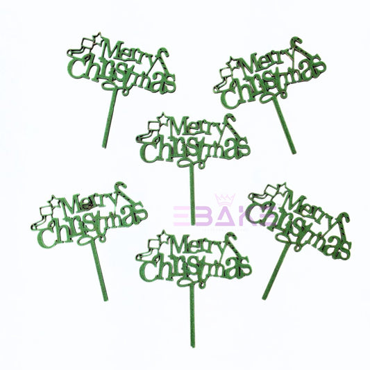 Merry Christmas Mini Cake Topper (Set of 6 Pcs) MDF Shimmer