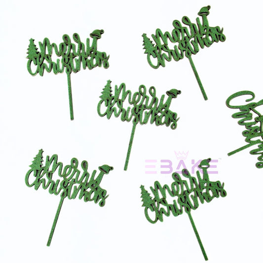 Merry Christmas Mini Cake Topper (Set of 6 Pcs) MDF