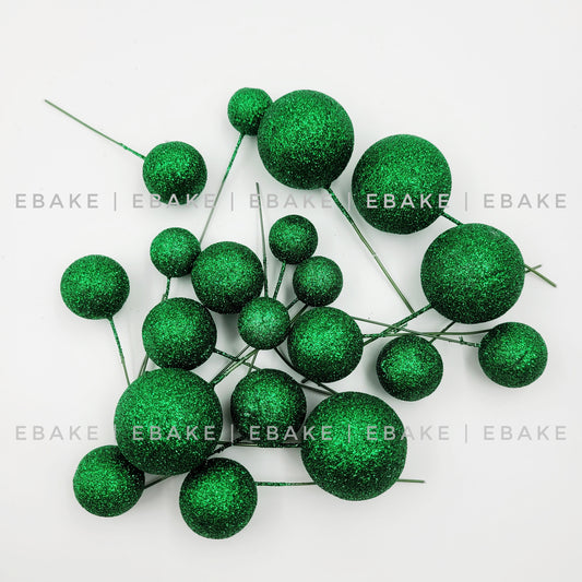Green Glitter Faux Balls - Set Of 20 Pieces