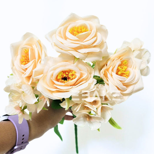 A1600 Light Peach Bud Rose Bunch With Fillers (7 Roses)