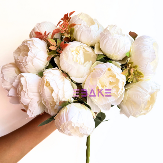 A1458 Premium Jumbo Peony Bunch (12 Peonies With Fillers) White