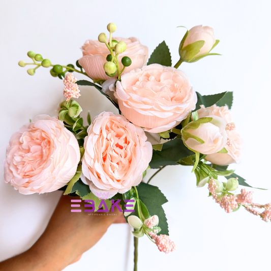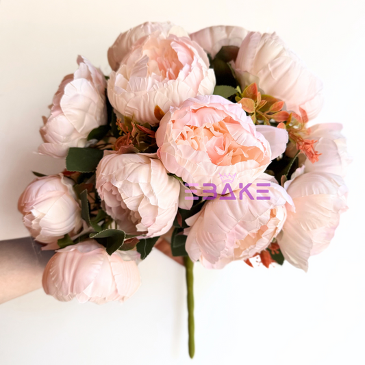 A1496 Premium Large Peony Bunch (Peony With Buds & Fillers) Light Peach