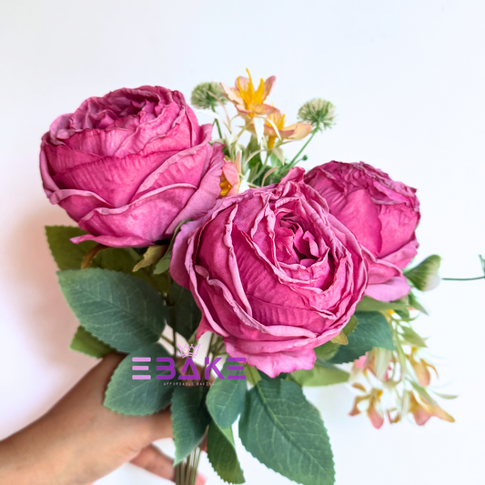 A1501 Premium Dried Jumbo Rose Bunch (3 Roses With Fillers) Cranberry Pink