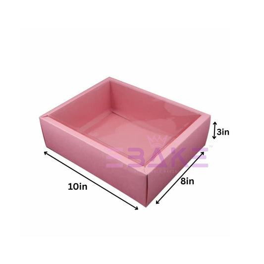 Pink Hamper Box With Transparent Lid (Set of 2) 10*8*3