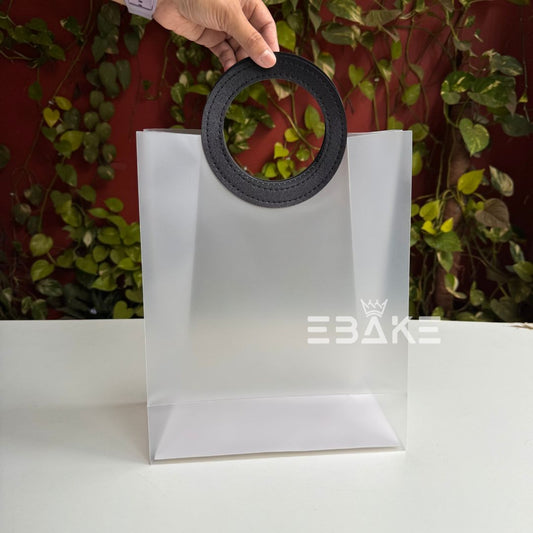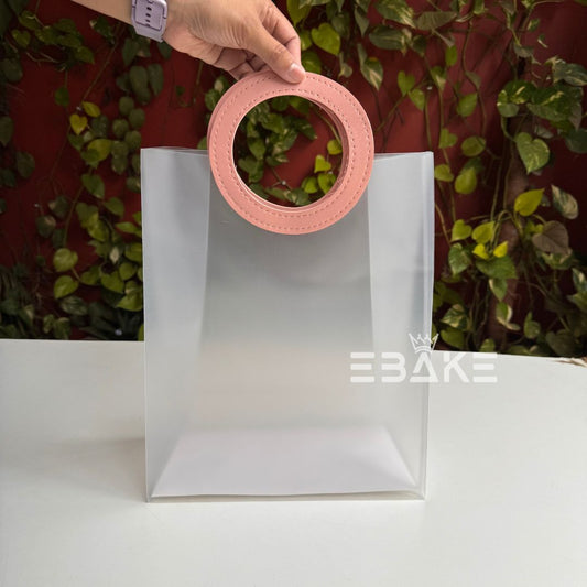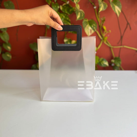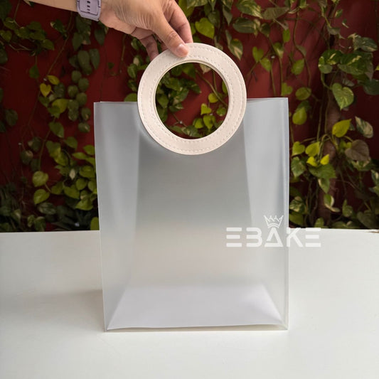 Large Frosted PVC Hamper Bag/Semi Transparent Goodie Bag With Handle (28x24x12.5cm) - Single Piece