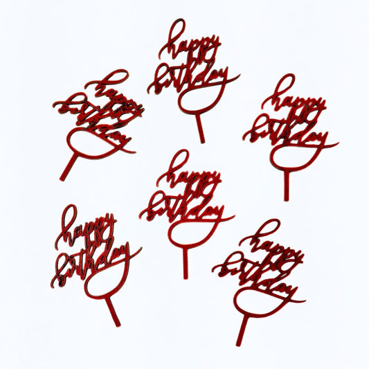 Happy Birthday Mini Topper Red Glitter (Set of 6) MDF