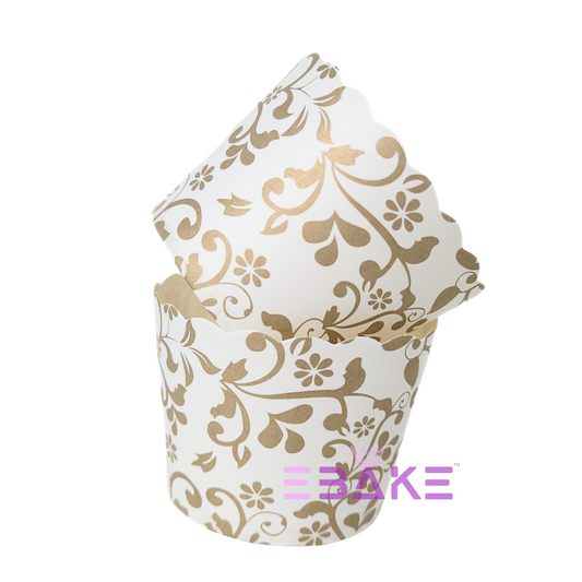 Floral Paper Muffin Cup White - Set Of 50 Pieces (Small)