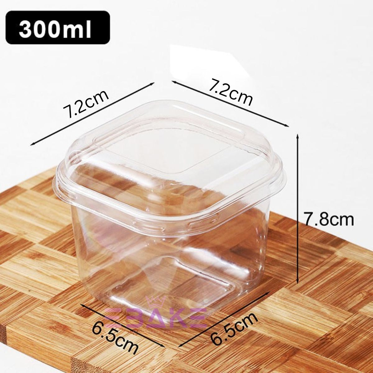 300ml Vertical Square Acrylic Dessert Box / Cake Tub (With Lid)