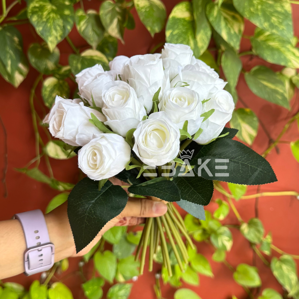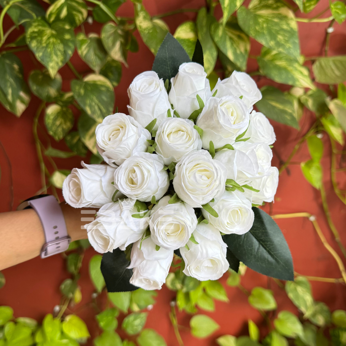 A1523 Artificial Rose Bouquet/Rose Bunch Bridal Bouquet (White) 18 Roses