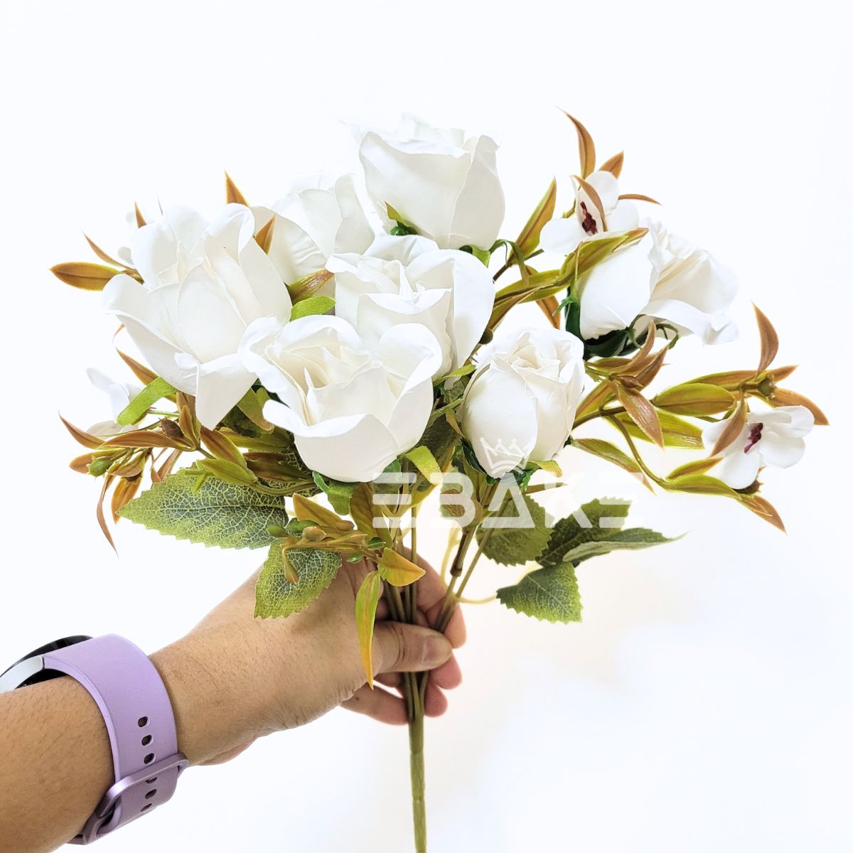 A1599 White Bud Rose Bunch With Fillers (7 Roses)