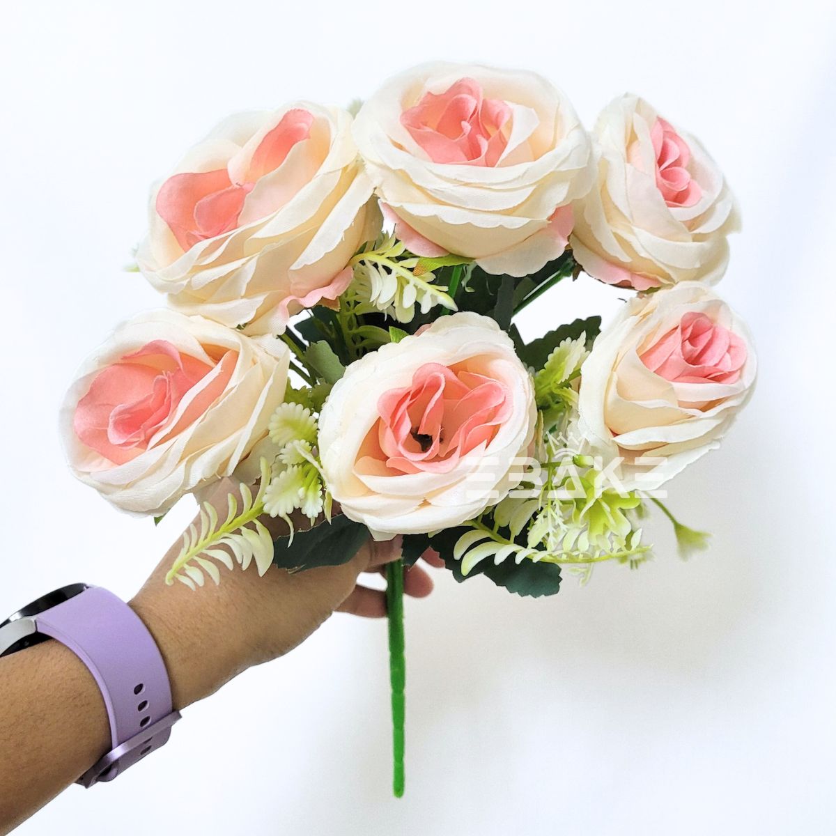 A1691 Off-White & Pink Mix Rose Bunch With Fillers