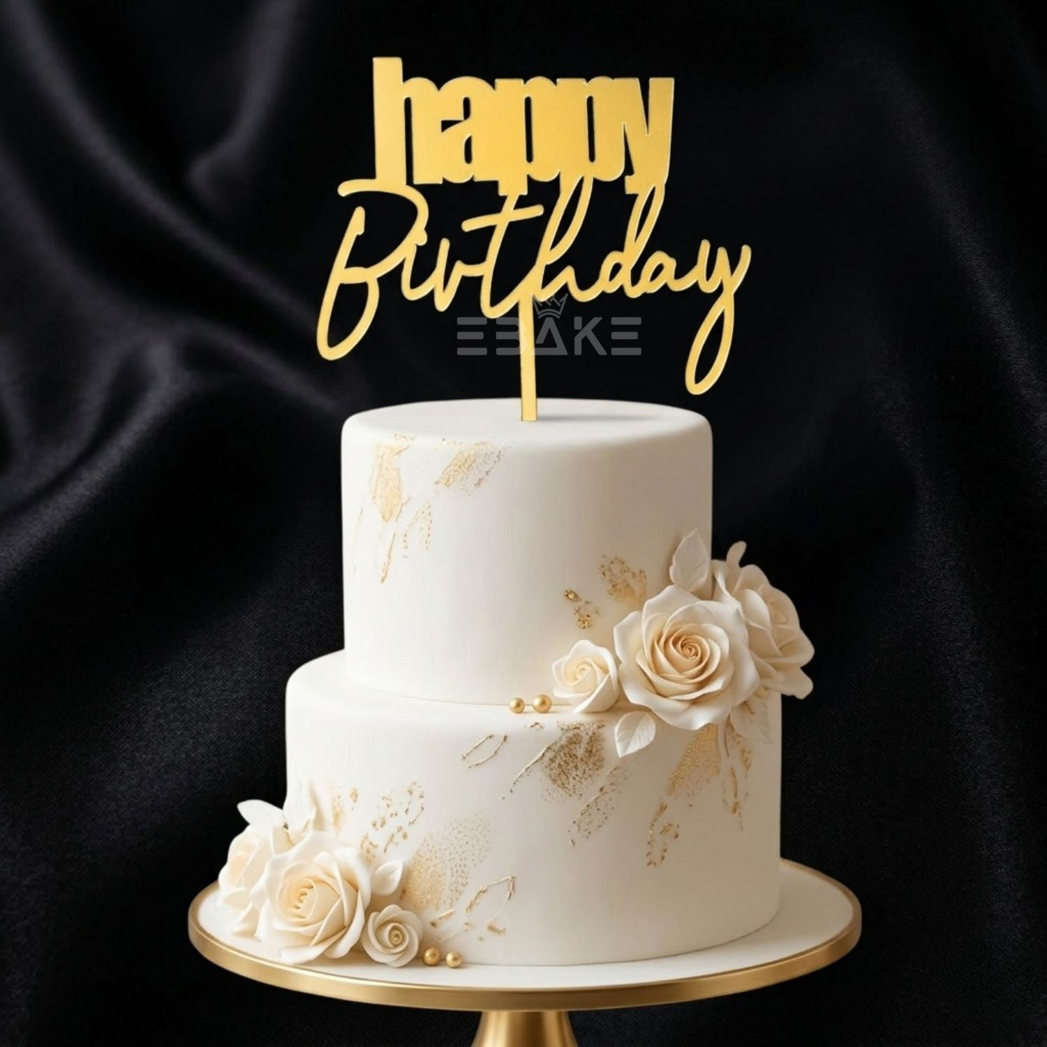 Happy Birthday Cake Topper 5 Inch Golden