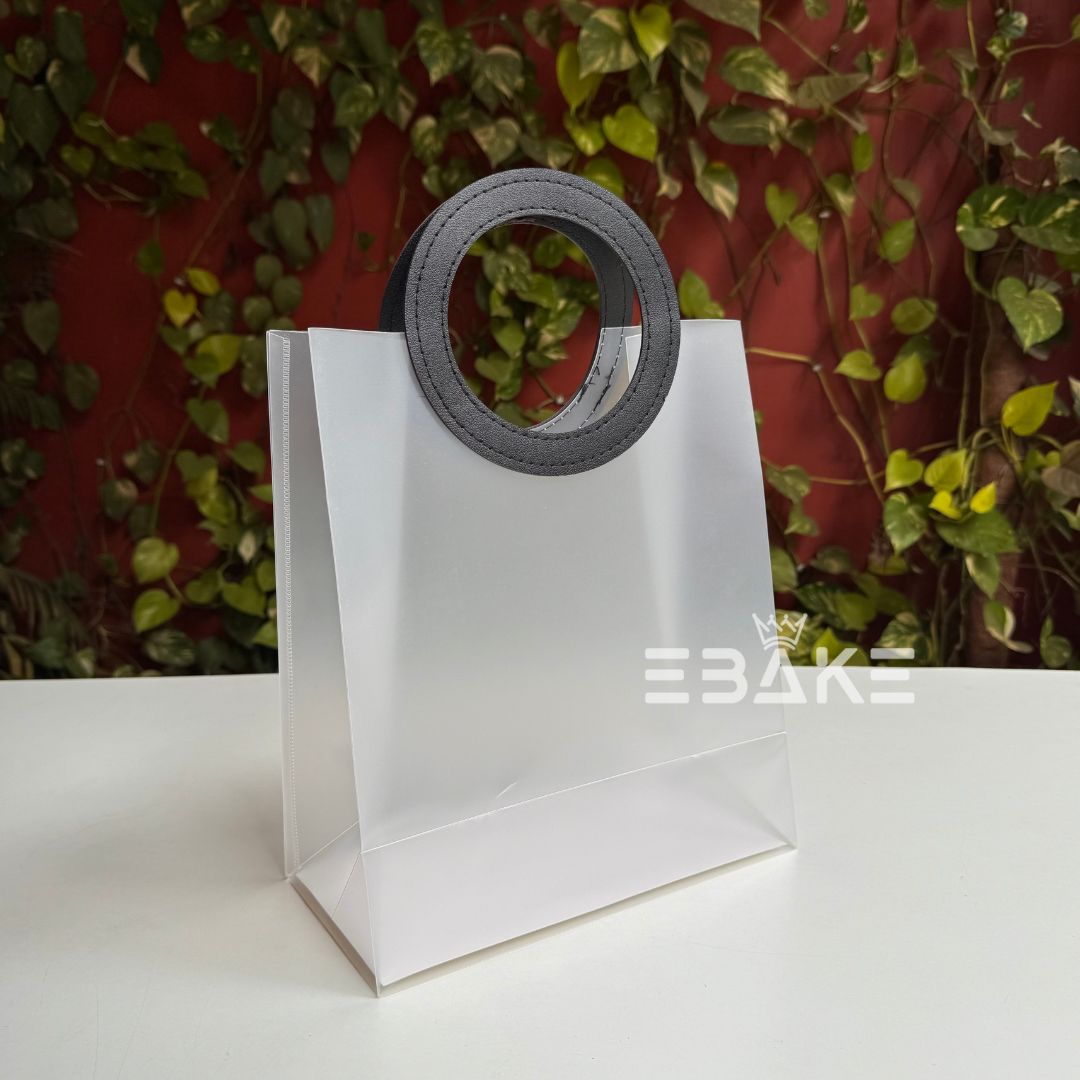 Large Frosted PVC Hamper Bag/Semi Transparent Goodie Bag With Handle (28x24x12.5cm) - Single Piece