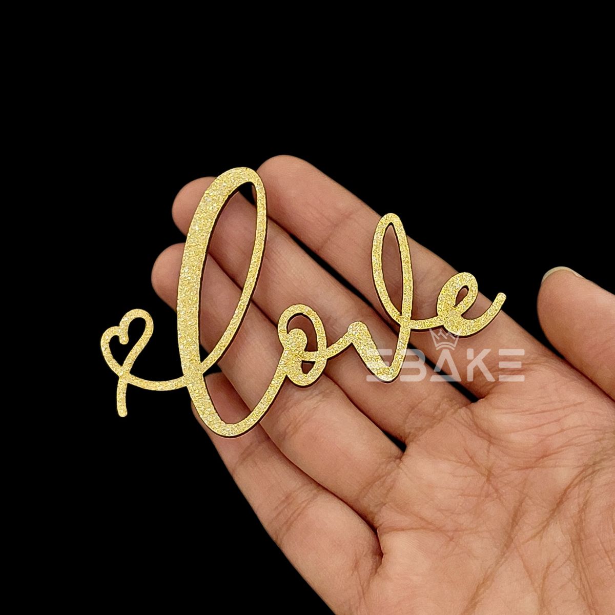 Love Cutout/Topper Gold Glitter (Set of 6) MDF