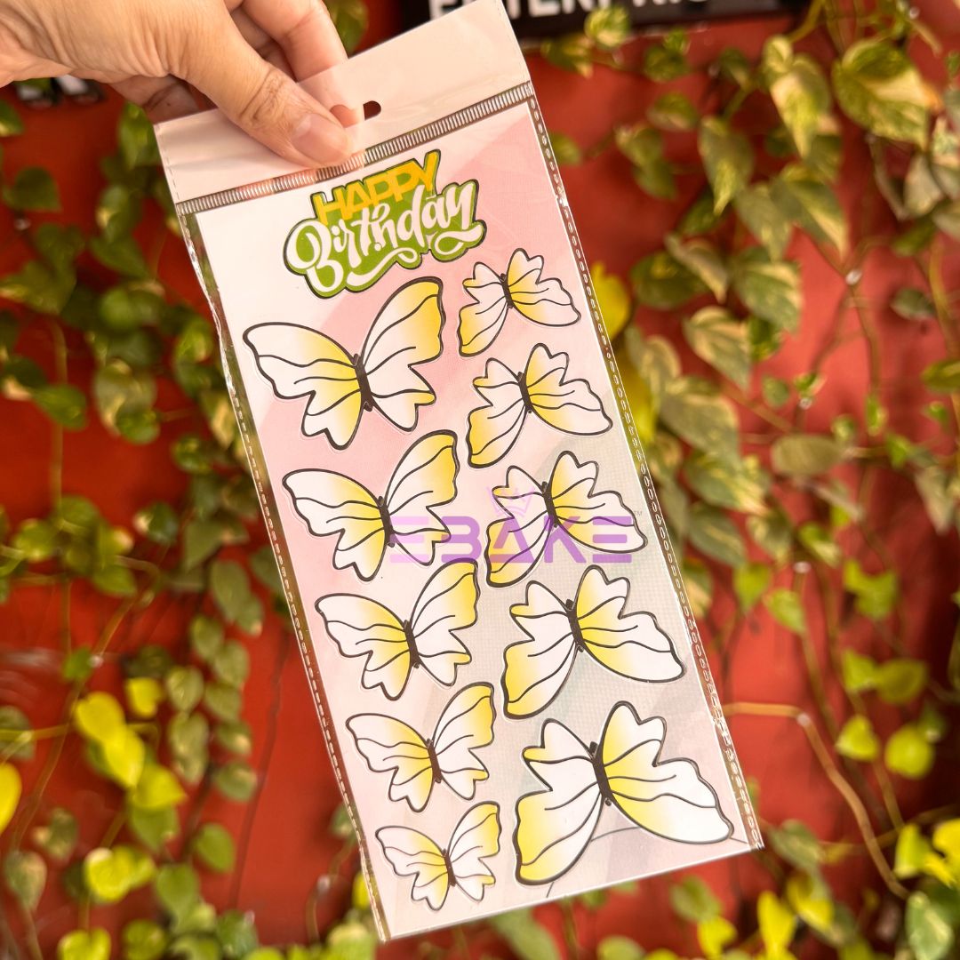 Yellow Paper Butterflies With Birthday Tag - (Set of 10 Pieces)