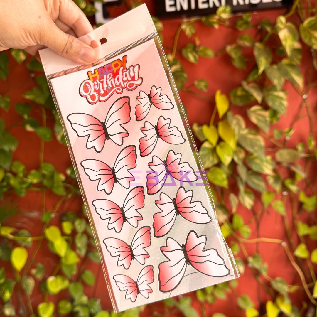 Red Paper Butterflies With Birthday Tag - (Set of 10 Pieces)