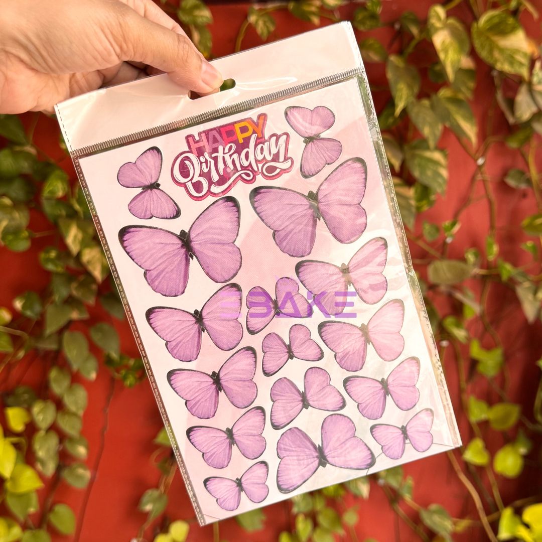 Purple Paper Butterflies With Birthday Tag - (Set of 16 Pieces)