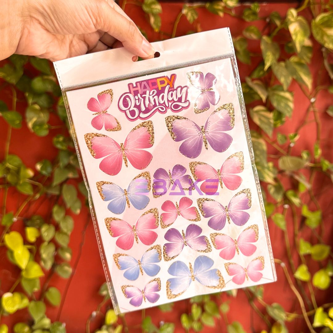 Paper Butterflies With Birthday Tag - (Set of 16 Pieces)