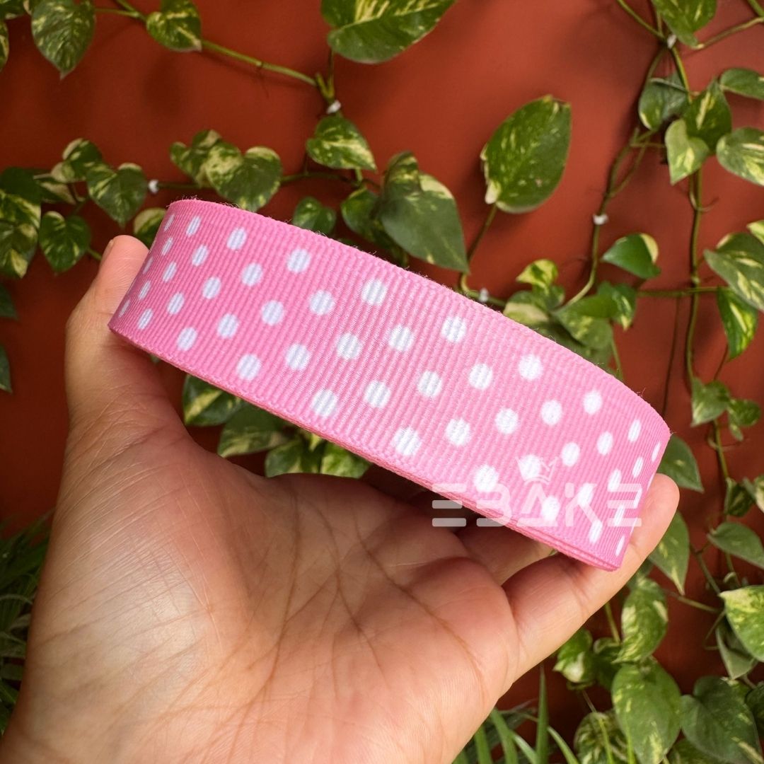 Pink Polka Dot Printed Pink Grosgrain Ribbon