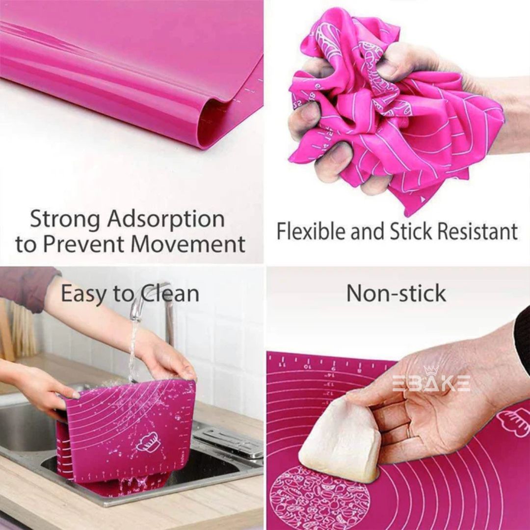 Pink Silicone Non Stick Multipurpose Baking Mat for Kneading & Fondant Rolling