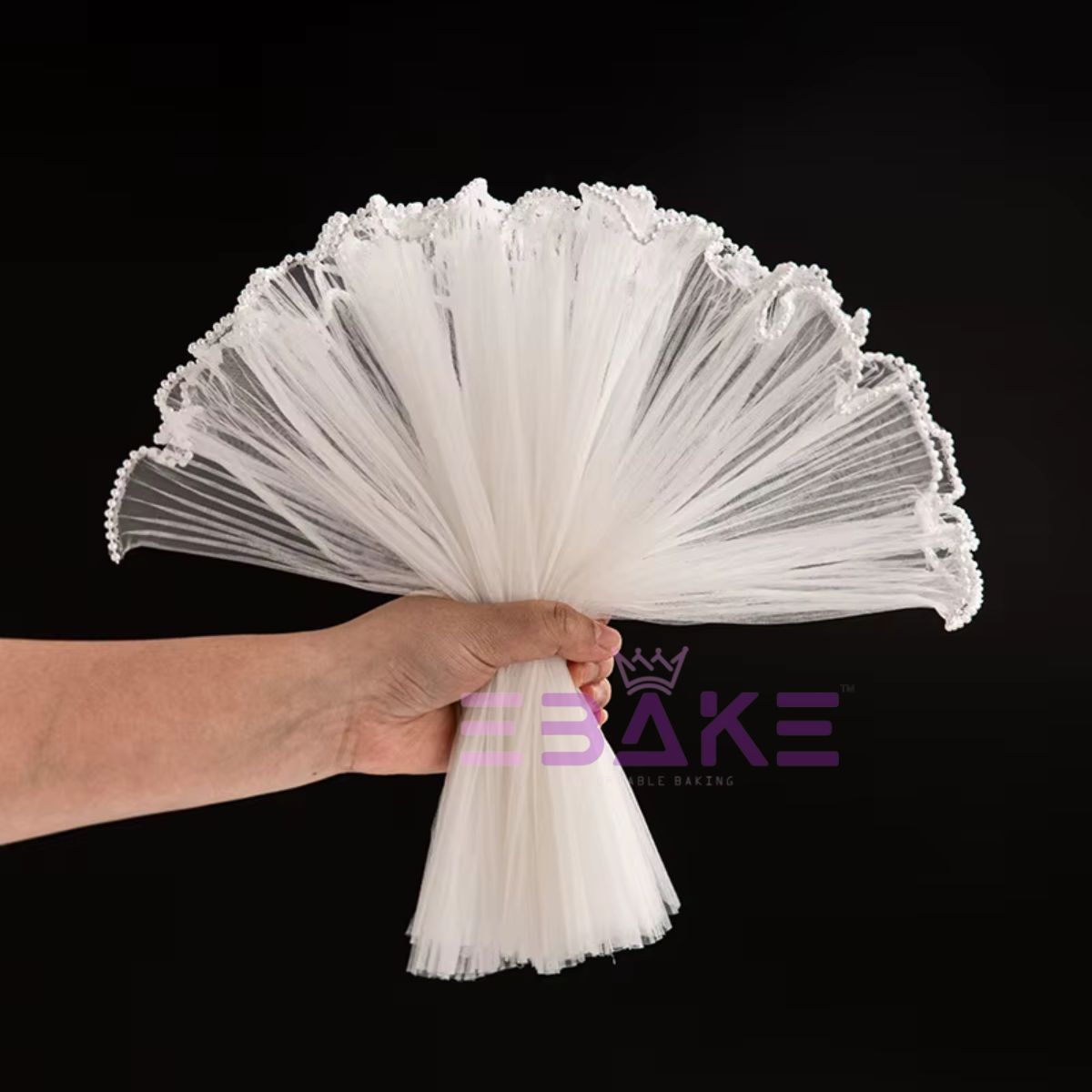 White Pleated Pearl Net for Flower Bouquet Wrapping (Noor Net) Wrinkled Wave Mesh For Wedding Cake