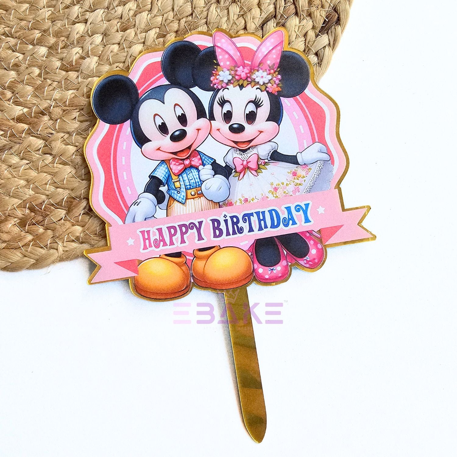 Mickey and Minnie Mouse Printed Acrylic Cake Topper