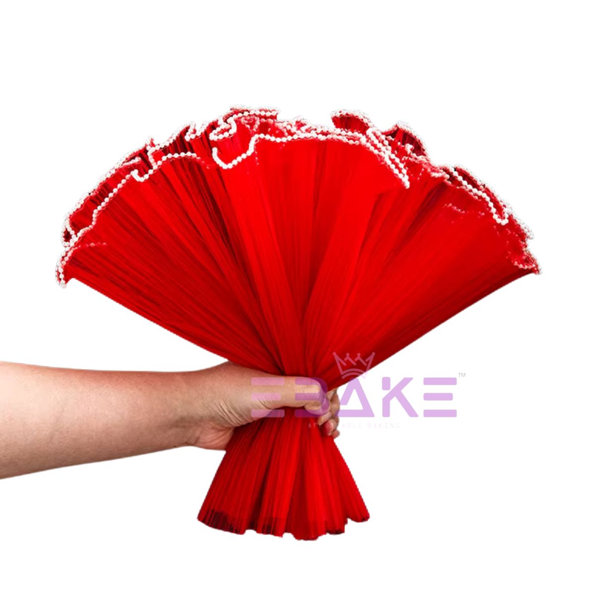 Red Pleated Pearl Net for Flower Bouquet Wrapping (Noor Net) Wrinkled Wave Mesh For Wedding Cake