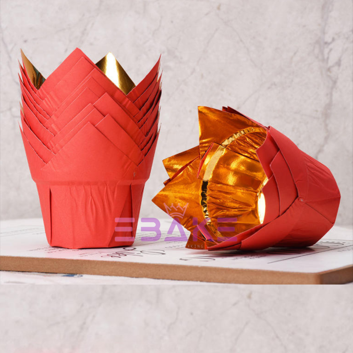 Red Tulip Cupcake Liner Paper Baking Cups (Set of 50)